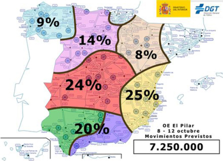 Trafikdirektoratet, DGT, forventer flere end syv millioner kørte ture i løbet af Pilar-ferien, og det betyder mere kontrol på vejene.