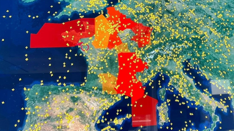 Over 1.000 fly måtte helt aflyses, men mange flere blev voldsomt forsinkede, da hele det franske luftrum var påvirket, så de fly, der kom af sted, måtte ud på en ordentlig omvej.