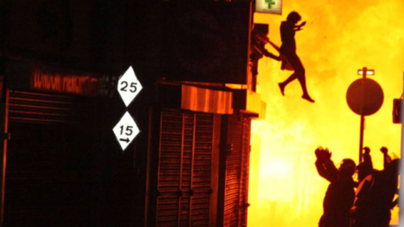 VIDEO: Udlænding springer ud af vinduet, da en brand pludselig bryder ud i hendes bygning. Heldigvis har hun nogle rigtig gode naboer.