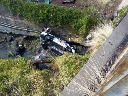 Bilen faldt 20 meter ned i slugten og endte i en lille å
