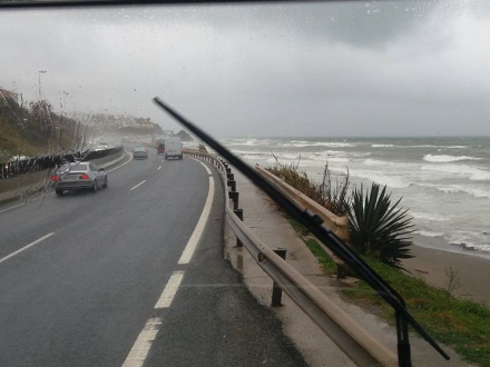 VILDT VEJR: Hård kuling, nedbør og høje bølger fordrev foråret. I går fik Mijas slud, mens der faldt rigtig sne andre steder i Málaga.