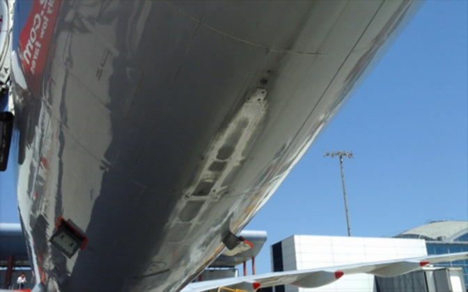 Flyets spildevandsanlæg, VHF-antenne og dele af skroget blev ødelagt under landingen, som også gjorde store skader på lufthavnens landingsbane.