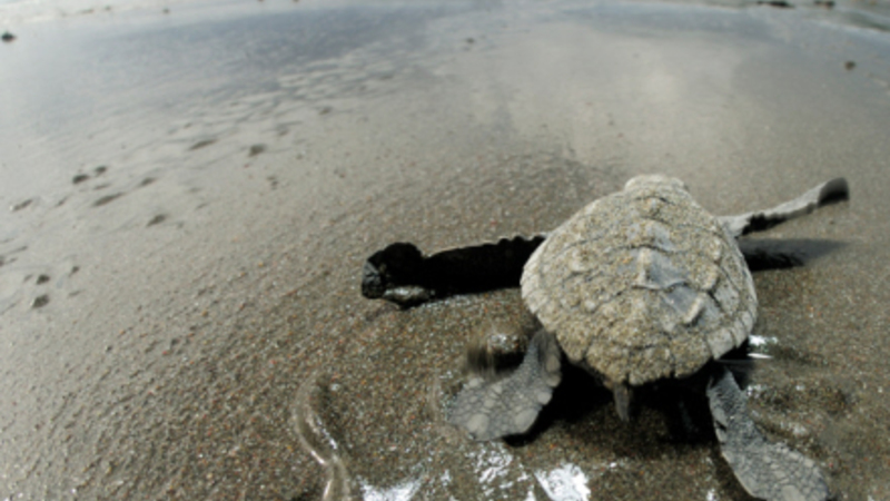 NATUR: Beskyttet under et af militærets særlige telte og overvåget af mennesker døgnet rundt ligger skildpaddeæg lige nu på stranden og luner sig varme og voksne nok til at møde verden.
