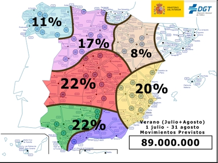 DGT - det spanske trafikdirektorat under Indenrigsministeriet, venter som nævnt 89 millioner rejser, heraf de 43,5 millioner i juli og 45,5 millioner i august