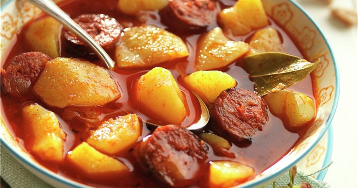 Jeg er ved at læse en serie kriminalromaner - elsker den slags romaner - som foregår i Haro, en by i La Rioja. I bøgerne fortæller de om typiske fødevarer i regionen, og i dag vil jeg give dig opskriften på kartofler i Rioja-stil, som de i La Rioja simpelthen kalder kartofler med chorizo.