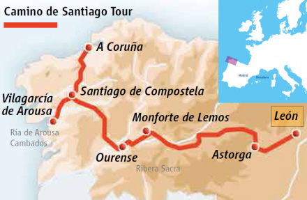 I Santiago de Compostela, der udgør målet for den berømte pilgrimsrute, kan de rejsende nyde en guidet tur rundt i byen, før man skal nyde en overdådig middag på det fem-stjernede hotel Parador Nacional Reyes Católicos; det gamle royale hospital for pilgrimme.