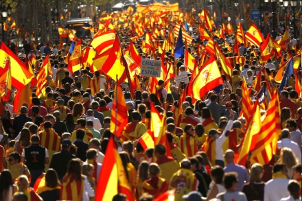 Søndag demonstrerede op mod en halv million tilhængere af, at Catalonien fortsat skal være en del af Spanien. Demonstranterne betragtes som det hidtil tavse flertal.