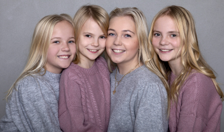 Hun samler sine sjove rekvisitter fra alle mulige steder, hvor hendes garvede fotograføje lige spotter noget sjovt. Men selvom hun har et fedt studie i Hjørring i Nordjylland, fungerer billeder også ret godt uden vægge. Og hun kan også bookes til at tage andre steder hen i landet.