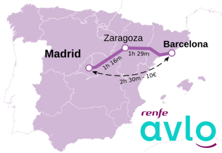 Med ibrugtagningen af Avlo den 23. juni tilbyder Renfe nu samlet 40 daglige tog med 20 i hver retning og 16.000 sæder på turene mellem Madrid og Barcelona med Ave og Avlo.