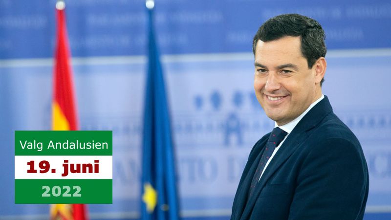 Andaluciens nuværende præsident Juanma Moreno smiler over udsigten til stor sejr.