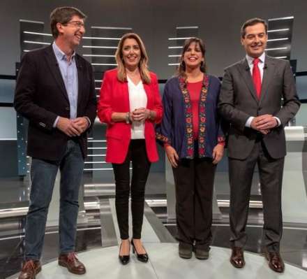 De fire topkandidater Juan Marín (Ciudadanos), Susana Díaz (PSOE-A), Teresa Rodríguez (Andalucía Adelante) og Juanma Moreno (PP)
