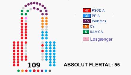 Podemos, der nu er forenet med IU under navnet Andalucia Adelante, holder skansen med uændrede 20 mandater.