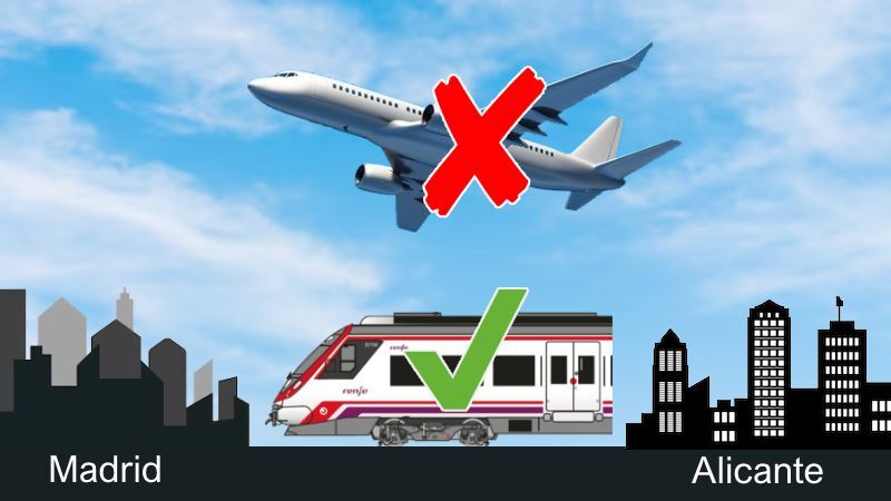 Aftalen mellem PSOE og Sumar forpligter sig til at reducere antallet af indenrigsflyvninger på de ruter, hvor der er et jernbanealternativ med en rejsetid på mindre end to en halv time.
