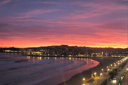Solnedgang i Gijón, Asturien