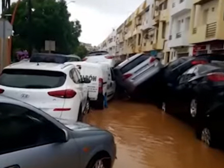 VIDEO: Veje forvandlet til floder, biler trukket væk, boliger under vand. For en uge siden knoklede brandfolk mod flammehav i Sydspanien, og mens branden endnu ikke er erklæret for slukket, knokler man nu med et ganske andet element.
