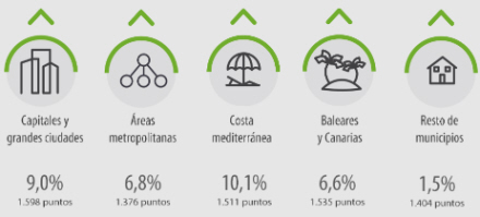 På øerne blev der registreret en årlig stigning på 6,6 procent, mens resten af områderne må stille sig tilfredse med en stigning på 1,5