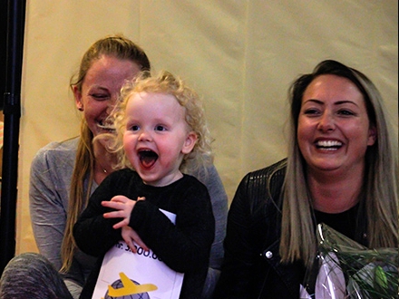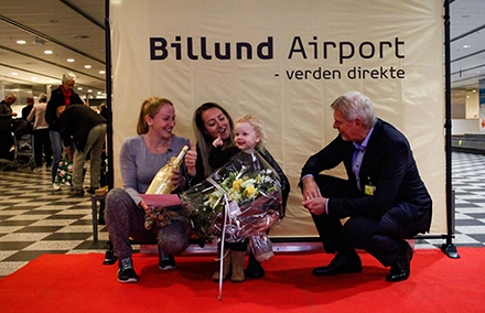 Det blev overrakt af Billund Lufthavns administrerende direktør, og der var både glæde og overraskelse at spore hos den heldige passager, som var to-årige Milia fra Aarhus. Med lys i øjnene åbnede hun pakkerne, der fulgte med æren. Hendes mor satte ord på oplevelsen: