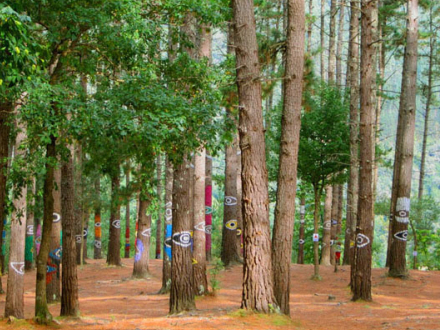 Det ligner nemlig langt fra en almindelig skov. Mange af træerne er udsmykket med maling i forskellige motiver. Derfor venter der en yderst farverig oplevelse til skovens besøgende vandrere.