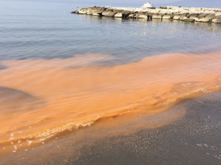 For vandet nær kysten var på mange strande på begge sider af Málaga en meget usædvanlig farve.