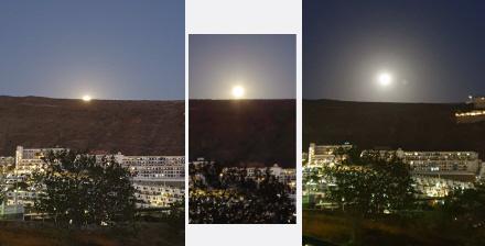 På Gran Canaria var det en anden sag. En af vores læsere Henning Schouw sidder i Puerto Rico på Gran Canaria, og han havde første parket til showet fra første øjeblik, da månen stod op. Det sidste billede blev taget klokken 20:03 lokal tid: