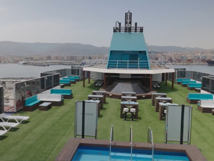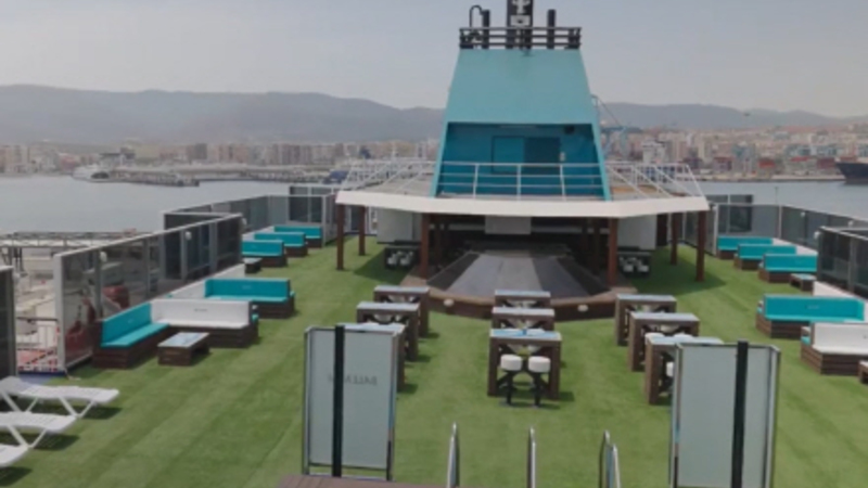 Rederiet Baleària og vandfirmaet Cabreiroá forvandler tonsvis af plastik til færge-møbler.