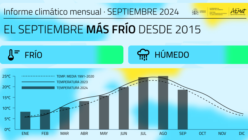 Det statslige meteorologiske institut, AEMET, har offentliggjort rapporten for september 2024; en måned, der var koldere og mere regnfuld end normalt.