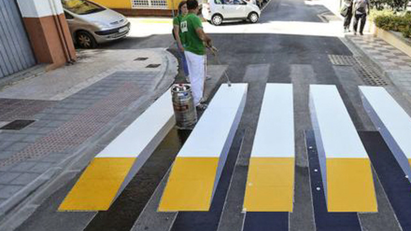 Den tredimensionale fodgængerovergang er selvfølgelig et trick.