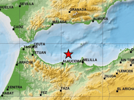 Det store jordskælv i morges er helt præcist blevet placeret mellem Melilla og den marokkanske by Al Hoceima og blev efterfulgt af tre efterskælv på præcist samme sted på mellem 3 og 3,9.