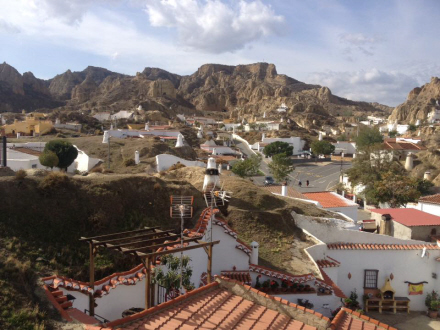 På vejen smuttede vi lige ind omkring Guadix, der er kendt for sine omkring 3.000 hulehuse. Husene har en helt almindelig facade, men er så hakket ind i klippen bagved. Det sikrer en konstant og behagelig temperatur på omkring 18 grader året rundt.