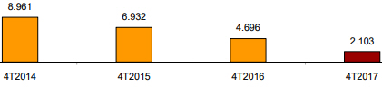 Udviklingen af antal udsmidninger i fjerde kvartal fra 2014 til 2017
