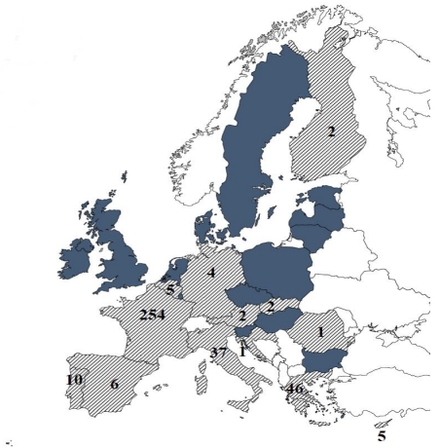 Strejkedage i perdioden fordelt på lande