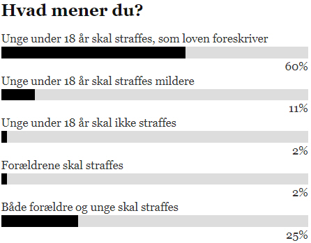 Hele seks ud af ti af jer læsere mener, at de unge skal straffes, som loven foreskriver.