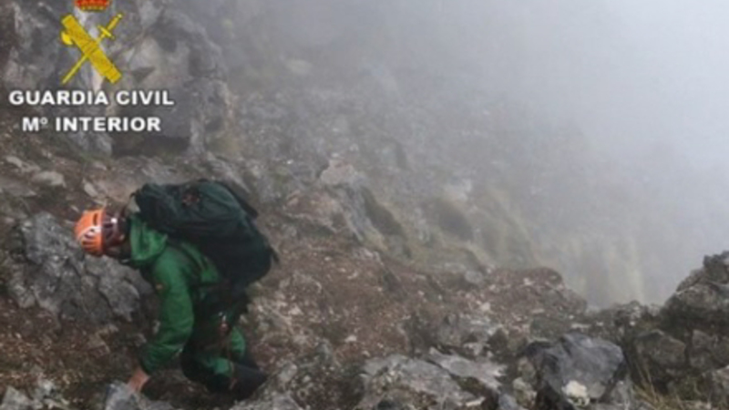 Men han er uden tvivl faldet et stykke, og det har været i et vanskeligt fremkommeligt sted, da Guardia Civil-betjente fra den særlige bjerg rednings-gruppe, GREIM, blev sat i aktion.