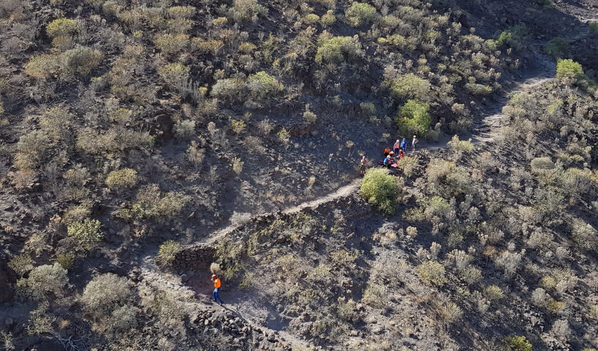GES-helikopteren fik i samarbejde med folk fra den særlige bjergredningstjeneste fra Guardia Civil fundet den tilskadekomne. Helikopteren evakuerede ham til den nærliggende fodboldbane i Playa de Mogán.