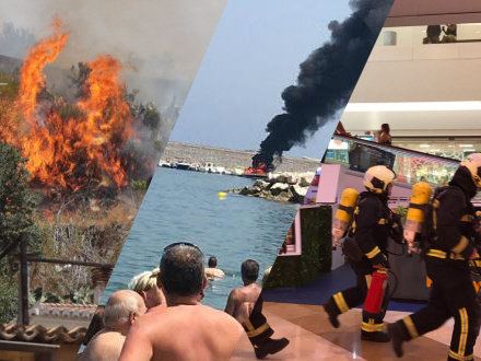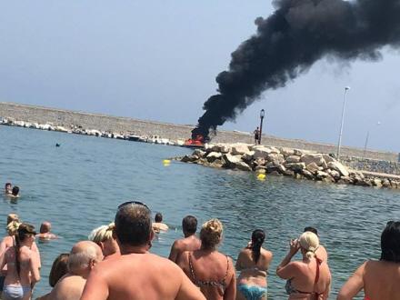 Først blev der meldt om eksplosioner i havnen, hvor hundredvis af strandgæster kunne vidne, at en båd gik op i flammer, mens en mand måtte springe i vandet for at flygte fra ilden.