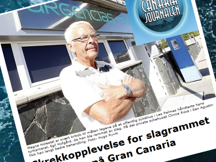 Kort efter klokken 16 blev Hofgård fragtet med helikopter til akutmodtagelsen på Hospital Universitario Dr. Negrin; det offentlige sygehus i Las Palmas på Gran Canaria, skriver Canariajournalen.