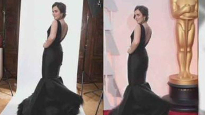I virkeligheden var hun slet ikke med. Hun brugte programmet 'Photoshop' til at placere sig på den røde løber.