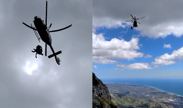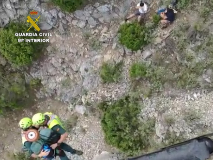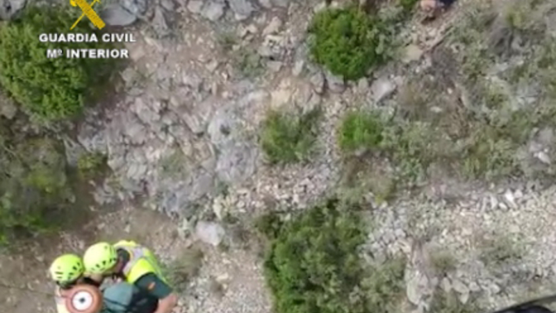 Guardia Civils særlige bjergreddere måtte af sted, og med en helikopter fik de manden sikkert ned fra det uvejsomme terræn.