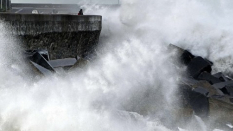 Skyet, blæst og oprørt hav