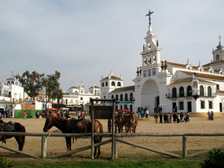 El Rocio minder mest af alt om en westernby: Stier og veje er af sand, og det er ikke noget sjældent syn at se heste bundet fast til et rækværk, mens rytteren lige er inde og får en forfriskning på en af de mange hyggelige barer.
