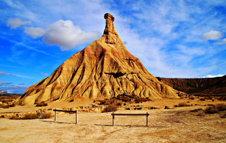 De udhuggede bjerge, Las Bardenas Reales i Navarra, i det nordlige Spanien, byder på et helt usædvanligt ørkenlandskab.