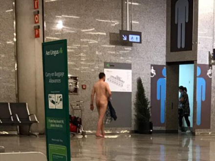 Bagage, tøj og sko kunne han tilsyneladende heller ikke overskue at slæbe rundt på, for både passagerer og personale måtte konstatere, at han gik rundt i lufthavnen lige så nøgen, som den dag han blev født.