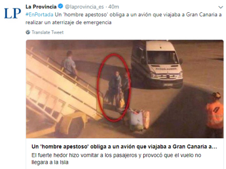 Særdeles ildelugtende mand tvinger et fly på vej til Gran Canaria til at foretage en sikkerhedslanding.