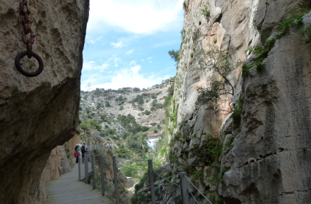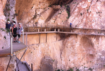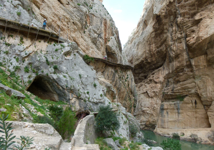 Selve Caminito del Rey foregår sådan set i to afdelinger med den karakteristiske gangbro banket ind i klippevæggen; i starten og i slutningen af de 2,9 kilometer. I midten af de to er der en strækning, hvor du går gennem skoven i et mere åbent områder.
