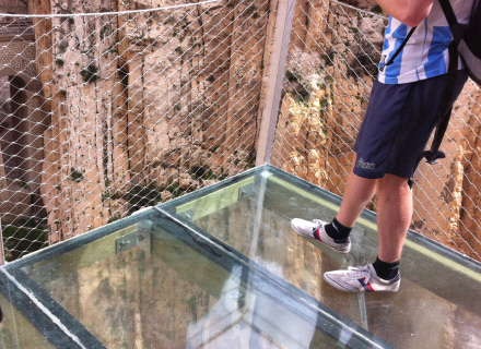 Platformen af glas - her ser du direkte ned i dybet