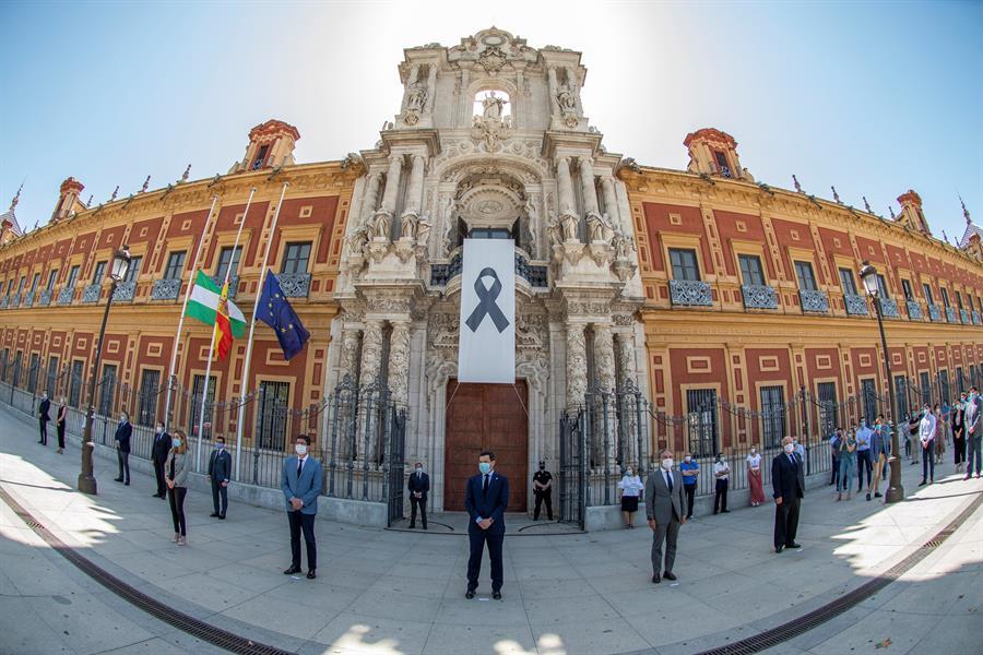 Den andalusiske regering afholdt onsdag klokken 12.00 ét minuts stilhed foran Palacio de San Telmo i Sevilla.