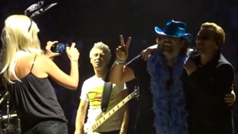 U2 udsendte senere et tweet med et billede af de to med billedteksten: "Mystiske gæster i aften i Barcelona”: