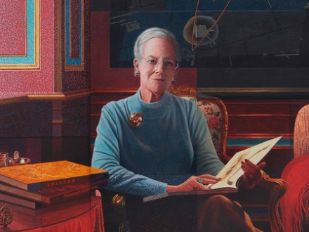 - Mette Korsgaard fortalte, at H.M. Dronningen havde udtrykt ønske om, at mit portrætmaleri, som var Nationalmuseets gave til hende i 2015, skulle være omslagsbillede til Thomas Larsens interviewbog “De dybeste rødder – Dronningen fortæller om Danmark og danskerne.