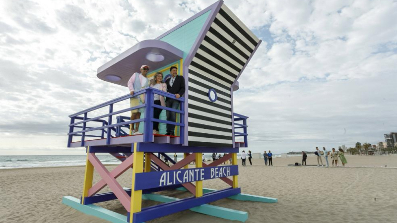 Det første livreddertårn lavet af bykunstneren Antonyo Marest står nu i sandet på San Juan-stranden, og det næste bliver opstillet i de kommende uger.