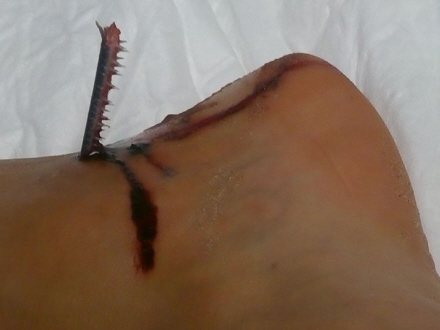 SPORT & FRITID: Kitesurfer blev angrebet af hornfisk, hvis skarpe kæbe satte sig fast og efterlod et voldsomt sår.